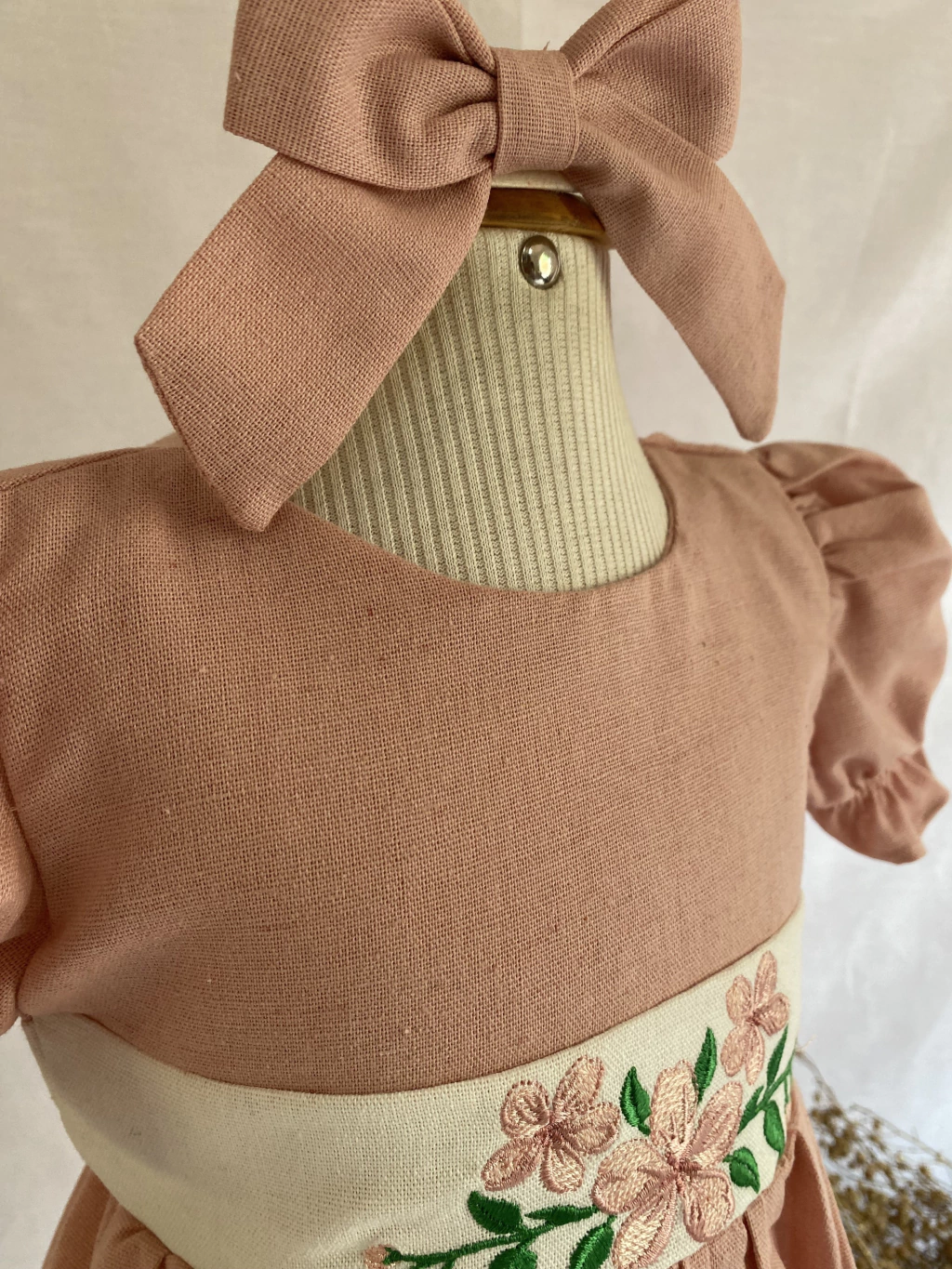 O vestido Encanto é confeccionado em uma mistura de 85% de linho e 15% de viscose, oferecendo conforto e qualidade. Possui um delicado bordado na cintura, conferindo um toque de elegância, e um adorável laço nas costas, adicionando charme ao visual. Disponível nos tamanhos P ao 6 anos por 199,90. Ideal para princesinhas que buscam estilo e sofisticação.
